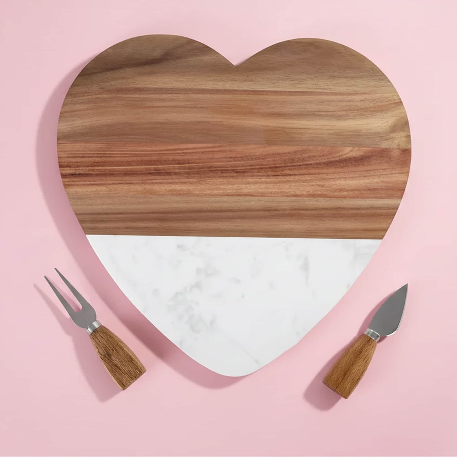 Marble & Wood Heart Shaped Board Serving Set