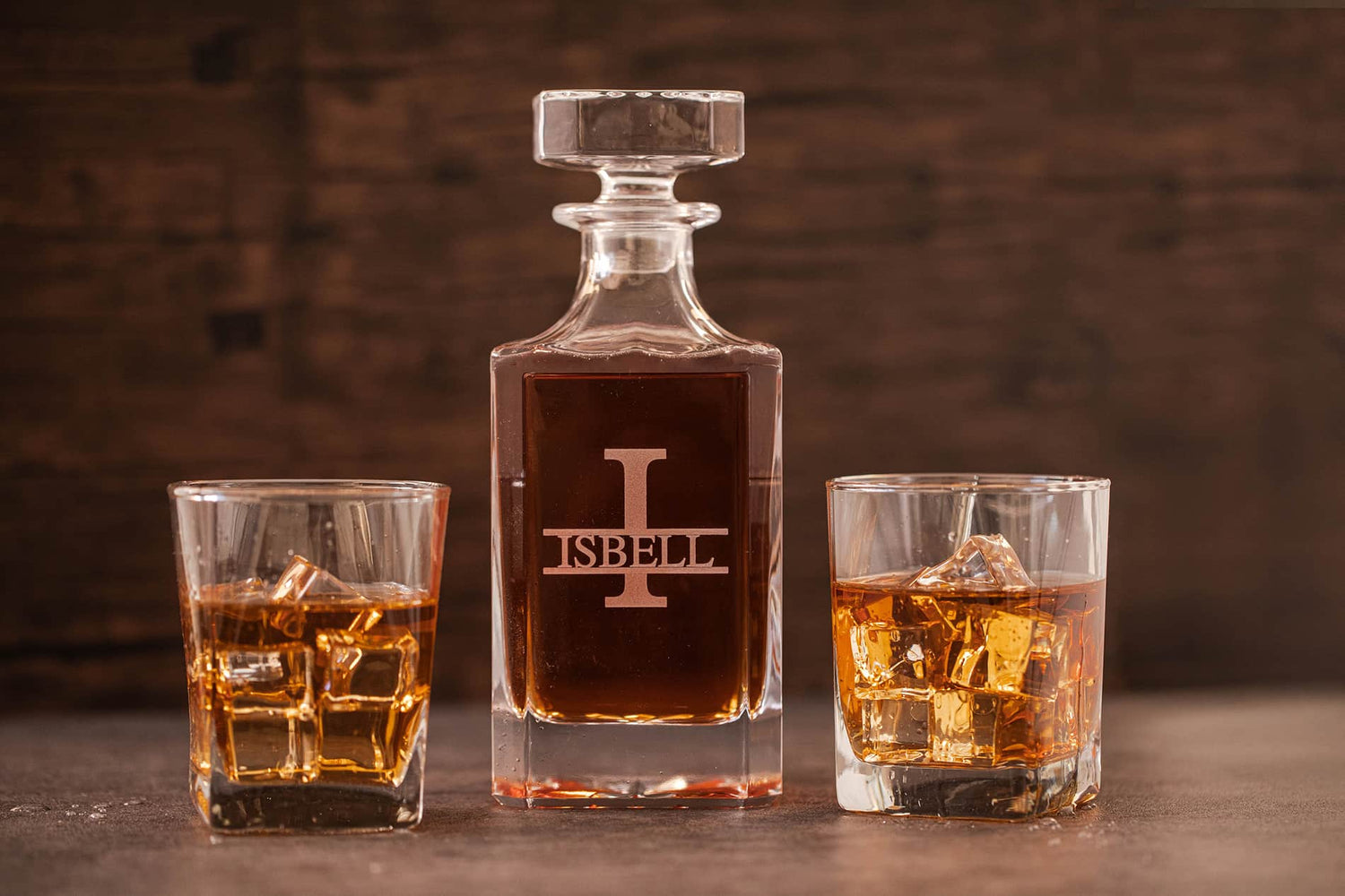 Makes a perfect set. 750mL Square Decanter and 8oz Rocks Glasses fully engravable.