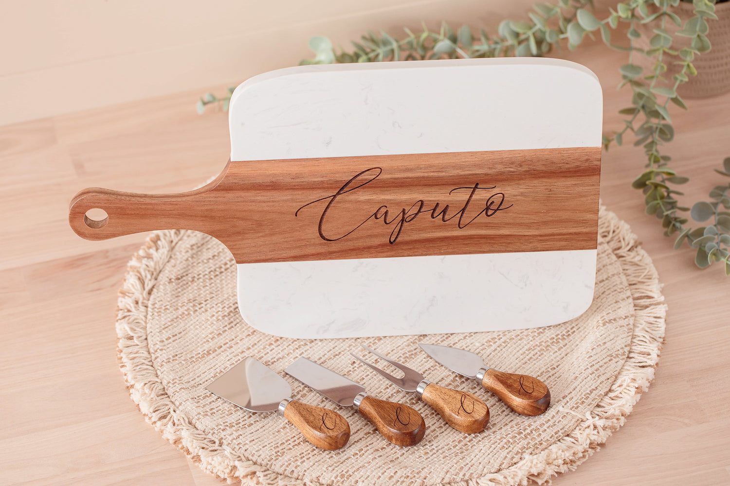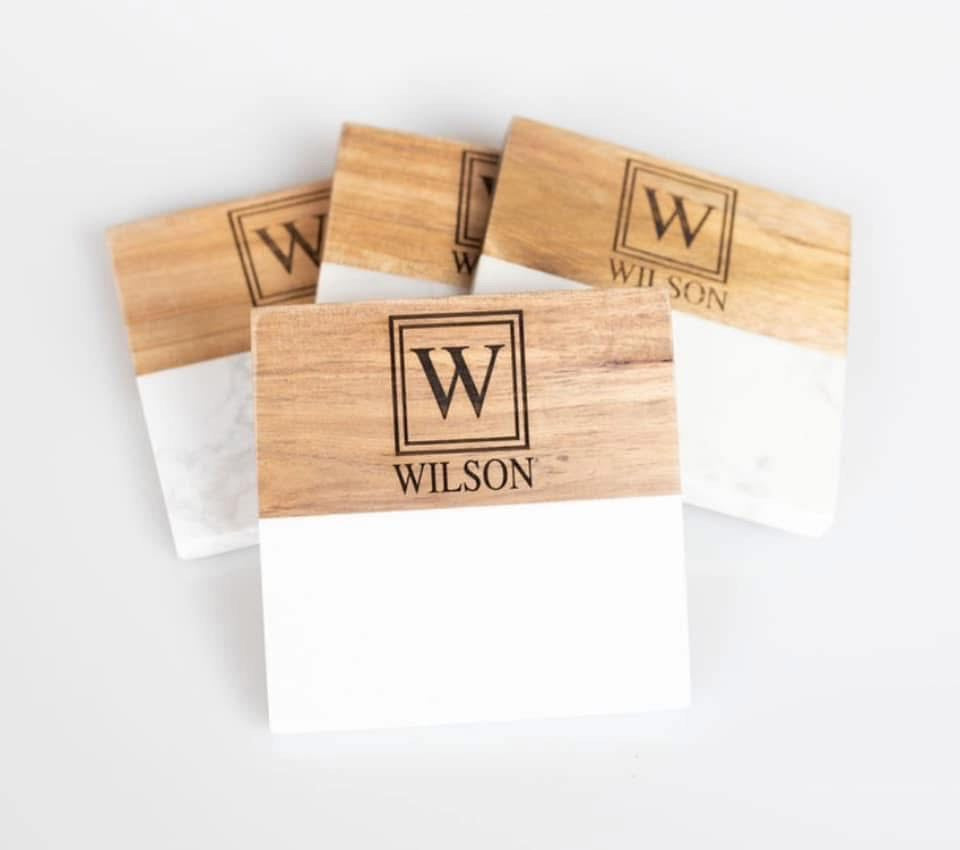 5-piece set. Engrave each coaster. Comes with marble display holder.