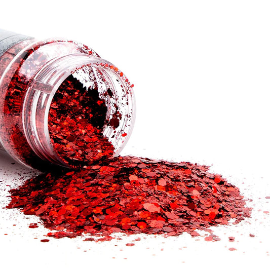 Holographic or "holo" glitter and color shift glitter styles are available in fine and chunky mix particle sizes.