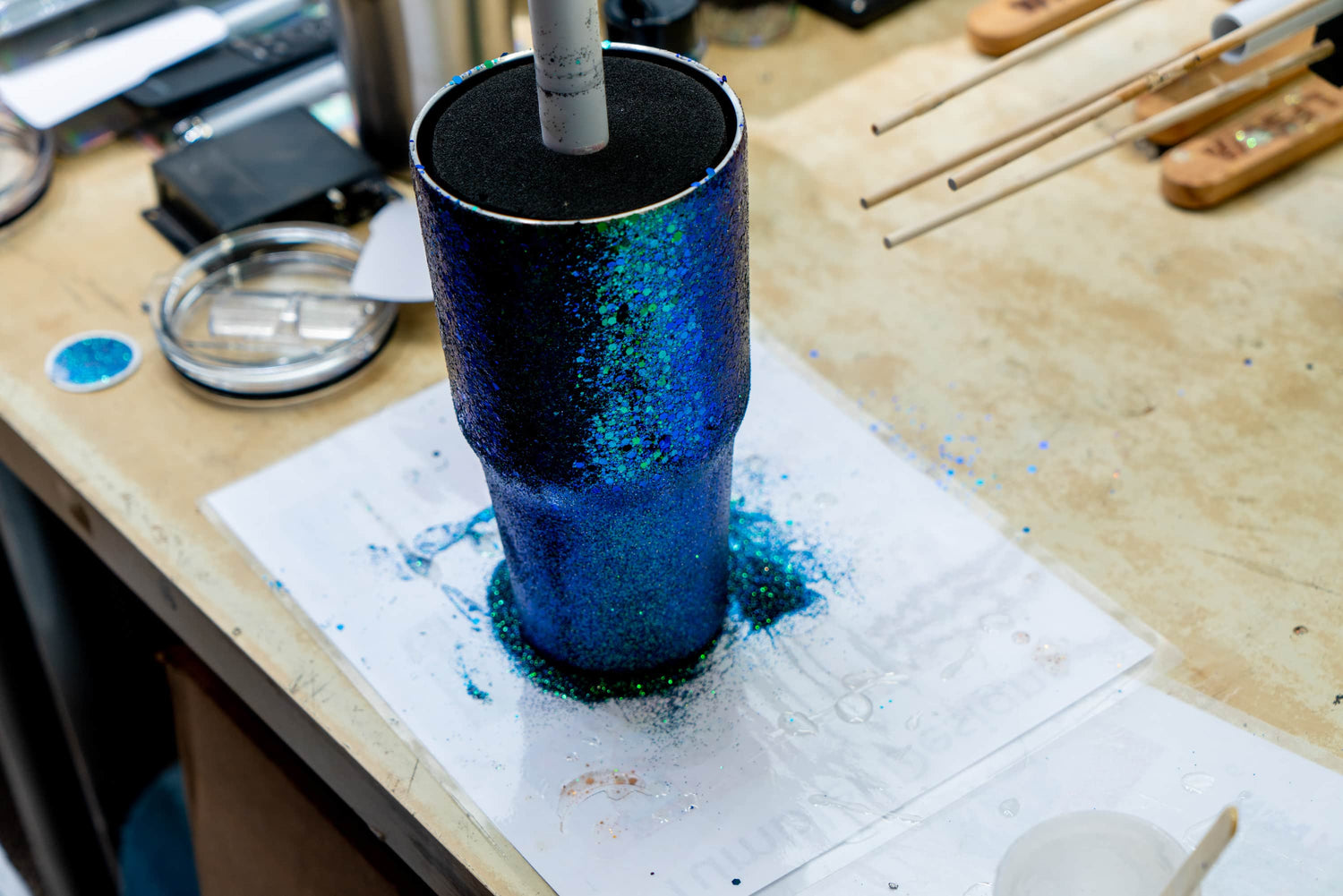 The better the glitter quality, the better the result. MakerFlo glitters were made especially with “tumbler makers” in mind, but they can also be used in other glitter crafts. Shop MakerFlo Glitter here.