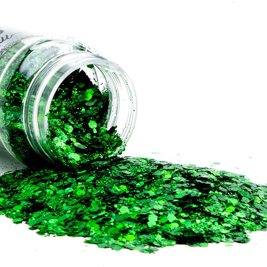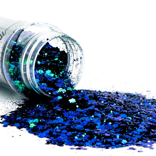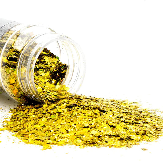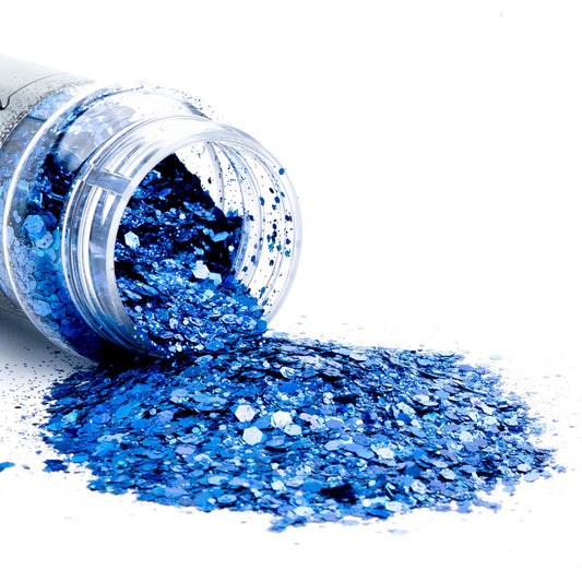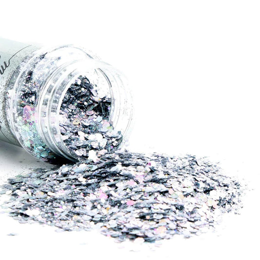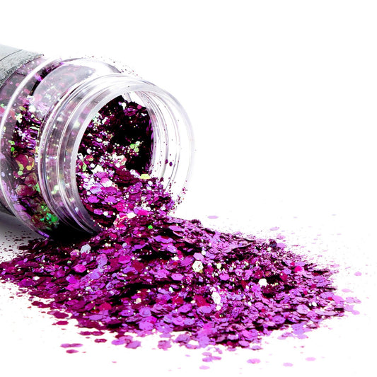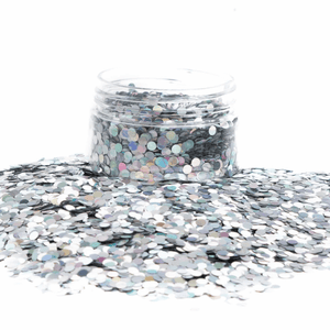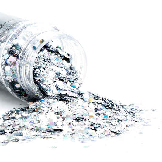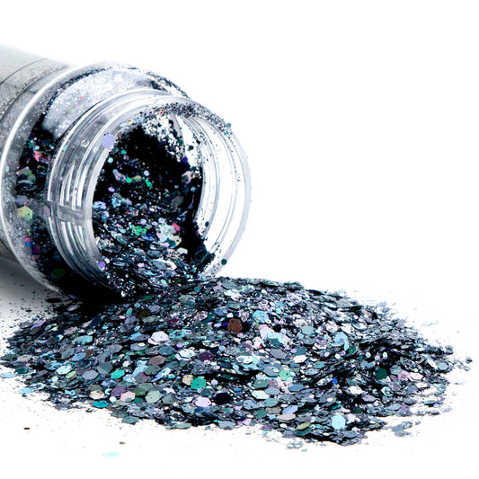 Our chunky glitter mixes include 4 sizes ranging from ultra fine 1/128” (0.2mm), fine 1/64” (0.4mm), large 1/24” (1.0mm) and jumbo 1/10” (2.5mm). Chunky Mixes are beautiful for their sparkle and shine, but they can be a little tricky to apply.