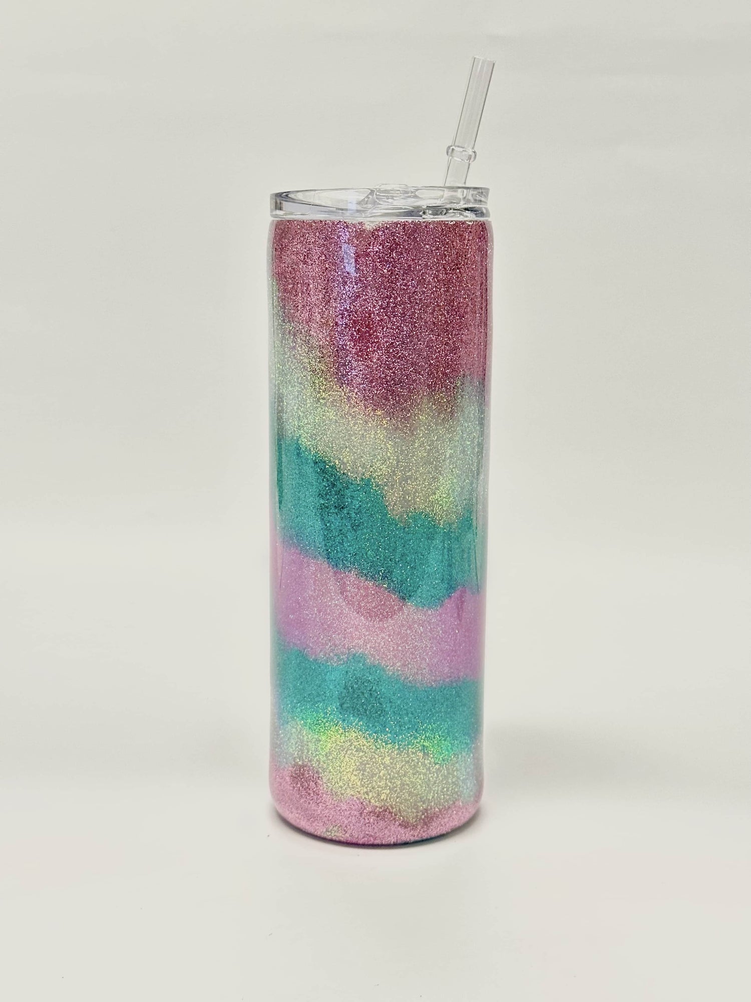 Your ‘exposed’ glitter will always soak up more epoxy than the finishing layers that follow. Be sure to mix enough epoxy to cover the entire tumbler in one batch.