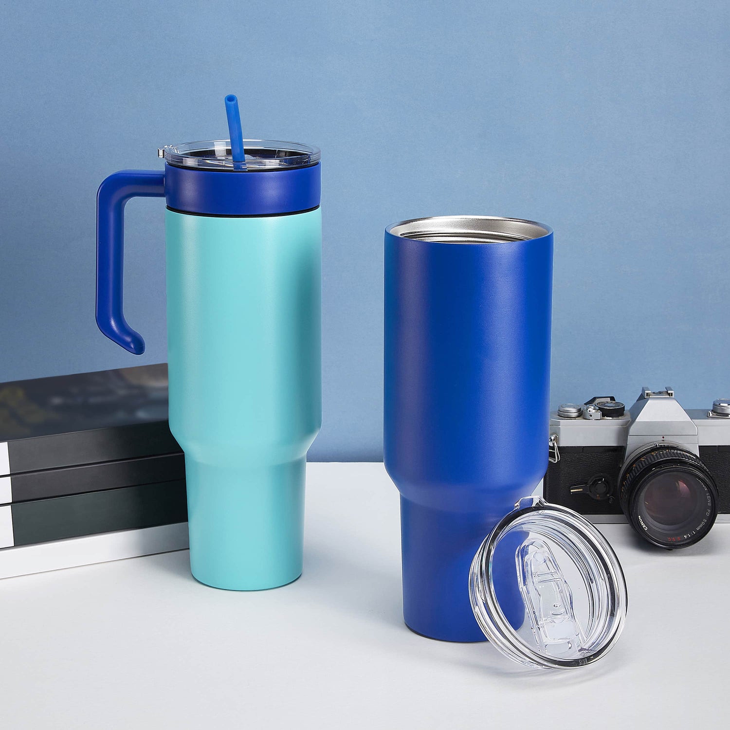 All MakerTwist™️ Tumblers feature screw-on leak-proof lids. Handle colors can be mixed and matched with tumbler colors.