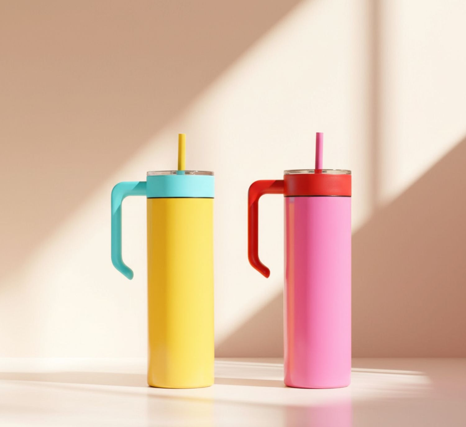Before customizing the tumbler, twist your handle on and then position your design in accordance with where the handle lies. This way your design will be perfectly aligned where you want, when the handle is on the tumbler.