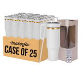 No need to worry about handle mishaps or seams when customizing this gold plated tumbler with full wrap engraving designs. The MakerFlo 40oz Gold Plate tumbler comes with a durable satin powder coated finish in white or black with optional handles (choose from 10 colors) sold separately.