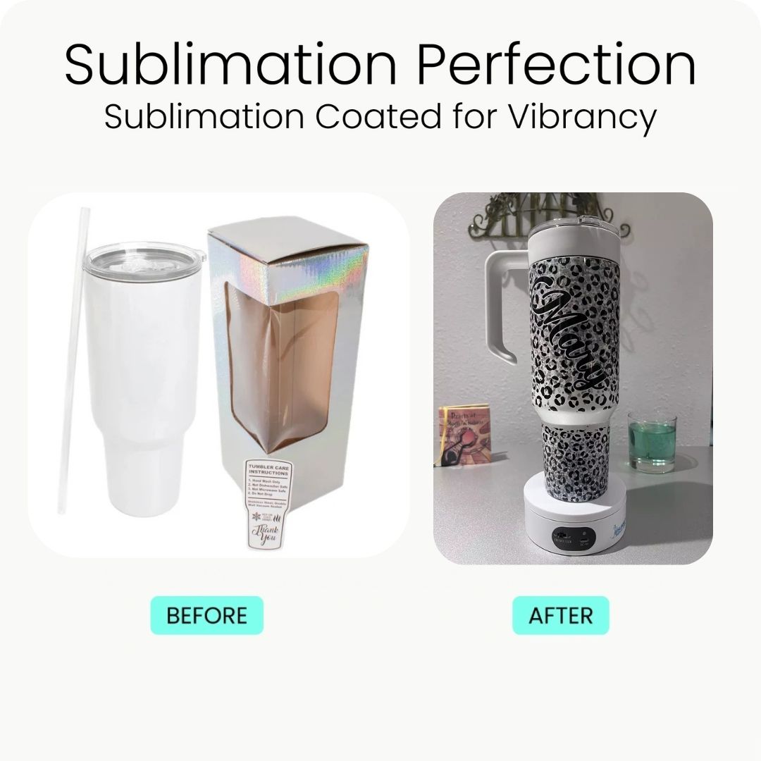 - This 40oz tumbler is available in sublimation white, sublimation shimmer and sublimation stainless steel