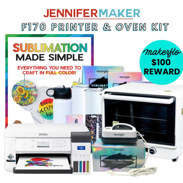 Ignite your creative spark with MakerFlo & JenniferMaker Epson® F170 Sublimation Ultimate Bundle! This bundle contains everything you need to dive into the exciting world of sublimation printing and transform ordinary objects into stunning, personalized masterpieces, perfect for aspiring entrepreneurs and passionate crafters.