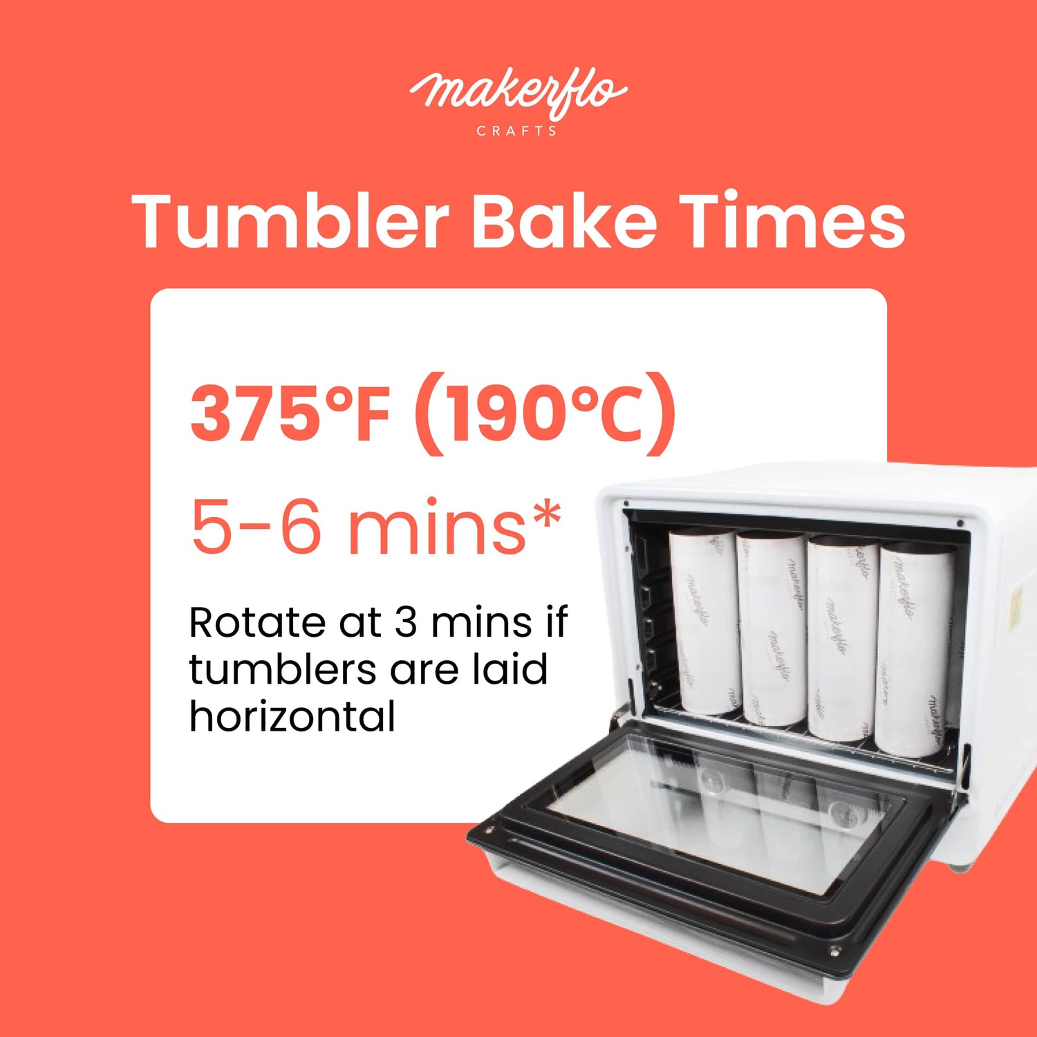 For sublimating tumblers, or other cylindrical items, you can use a mug press or a sublimation convection oven. The MakerFlo 40L Sublimation Oven can evenly bake up to twelve 20oz skinny tumblers at once, speeding up large order fulfillment!