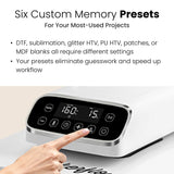 • Large 15"x15" Work Area Generous pressing surface ideal for shirts, hoodies, tote bags, sublimation panels, HTV projects and more!