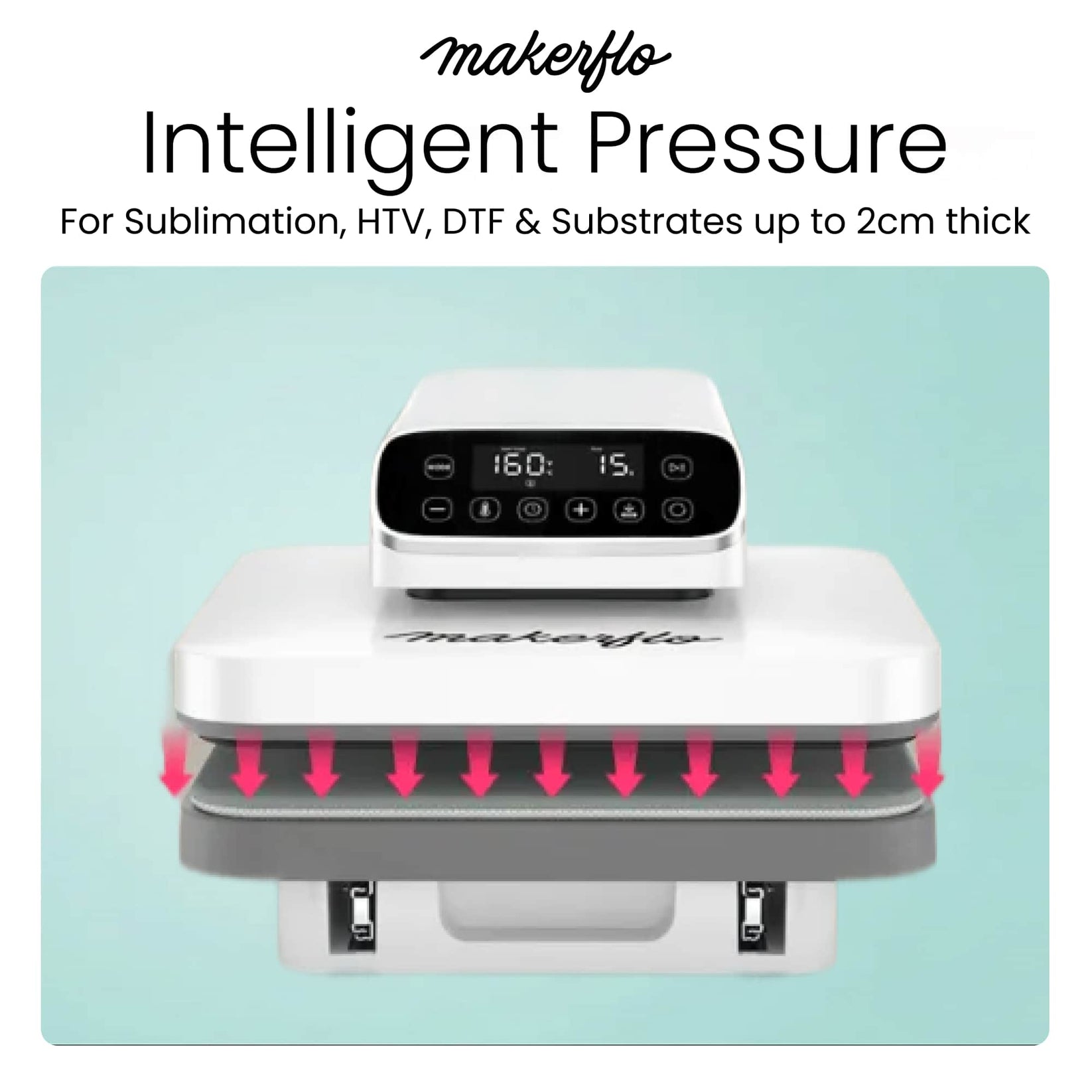 • Sleek White Design Clean, modern aesthetic that matches the MakerFlo heat press lineup and is easy to keep looking new
