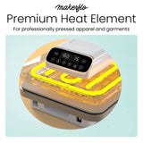 • Slide-Out Bottom Tray Easily load garments and keep your hands safely away from the heating plate