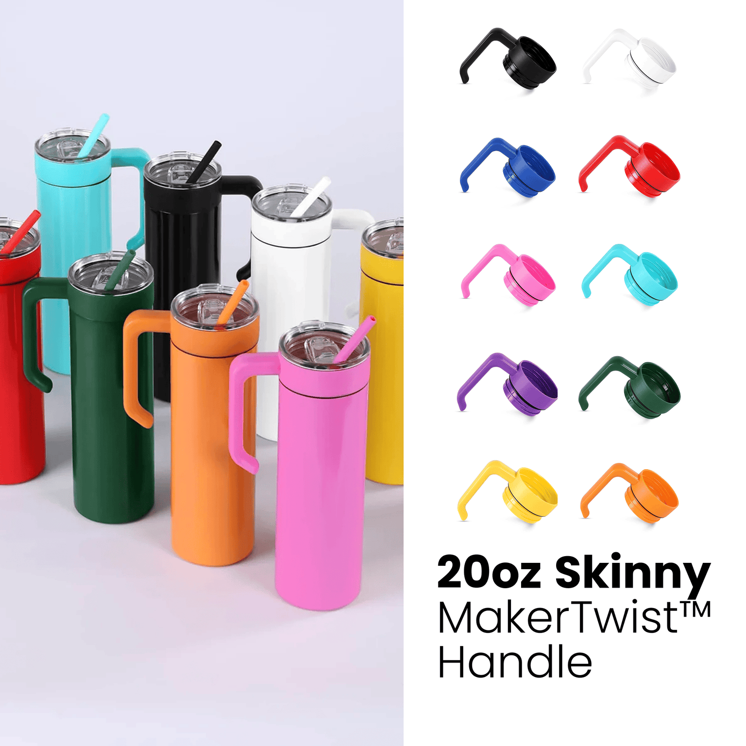 Our 20oz Skinny MakerTwist™️ System Handle is sold separately and made to fit these MakerFlo tumblers