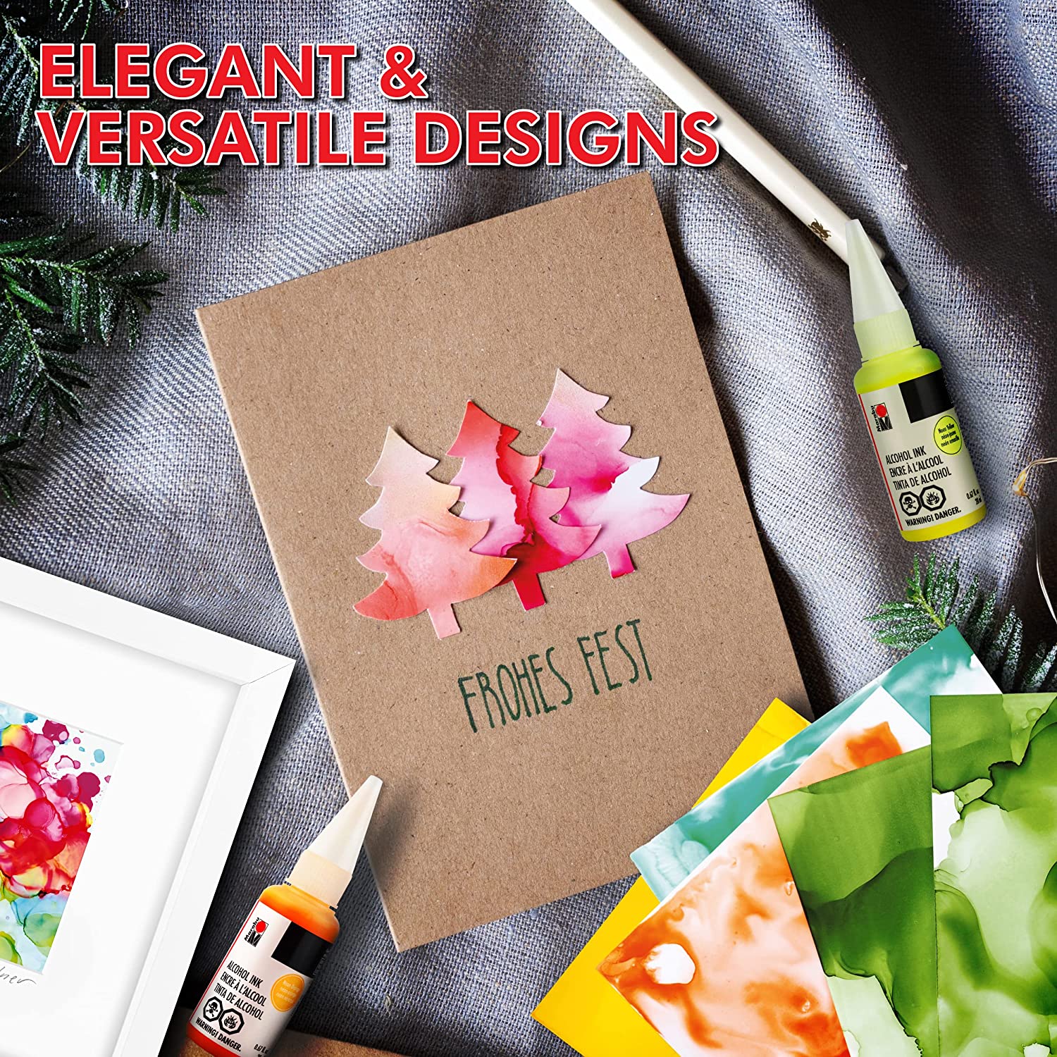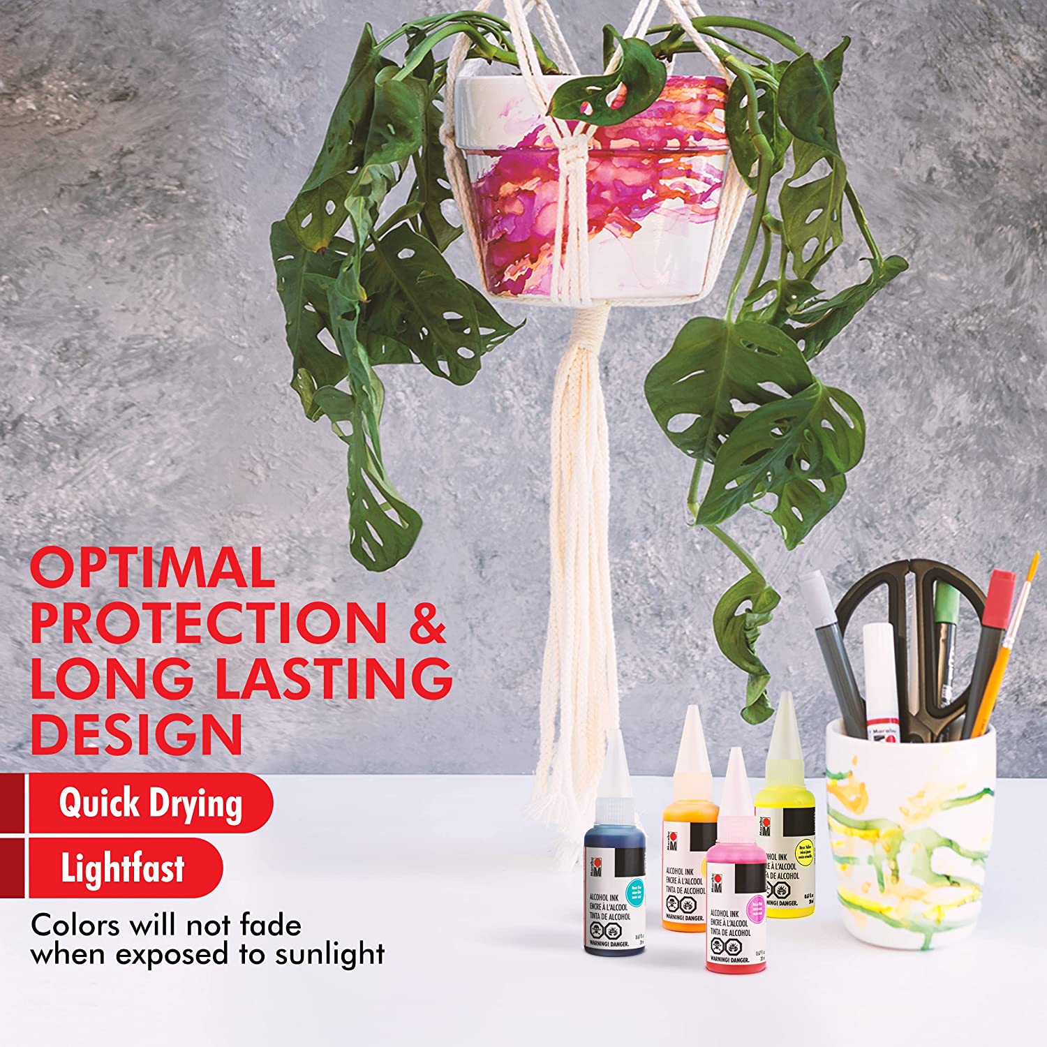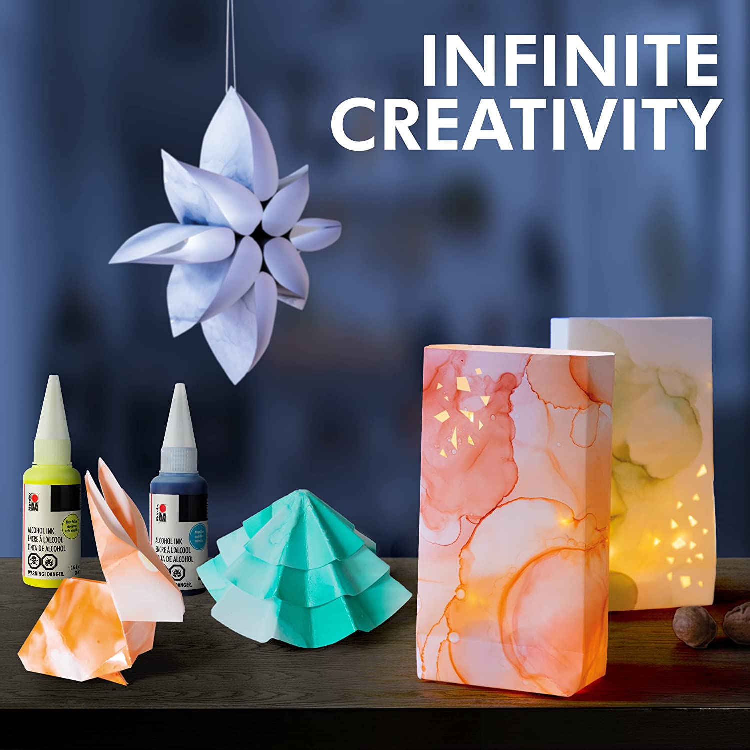 Create stunning works of art on a variety of surfaces with vibrant and versatile alcohol inks! Use the wide range of dye-based colors on their own or blend the inks together for infinitely creative possibilities. Our uniquely magical Rainbow and Color-Shift colors add a mesmerizing shimmer effect. The Extender increases the inks’ open time, lightens and lifts colors, and increases transparency.