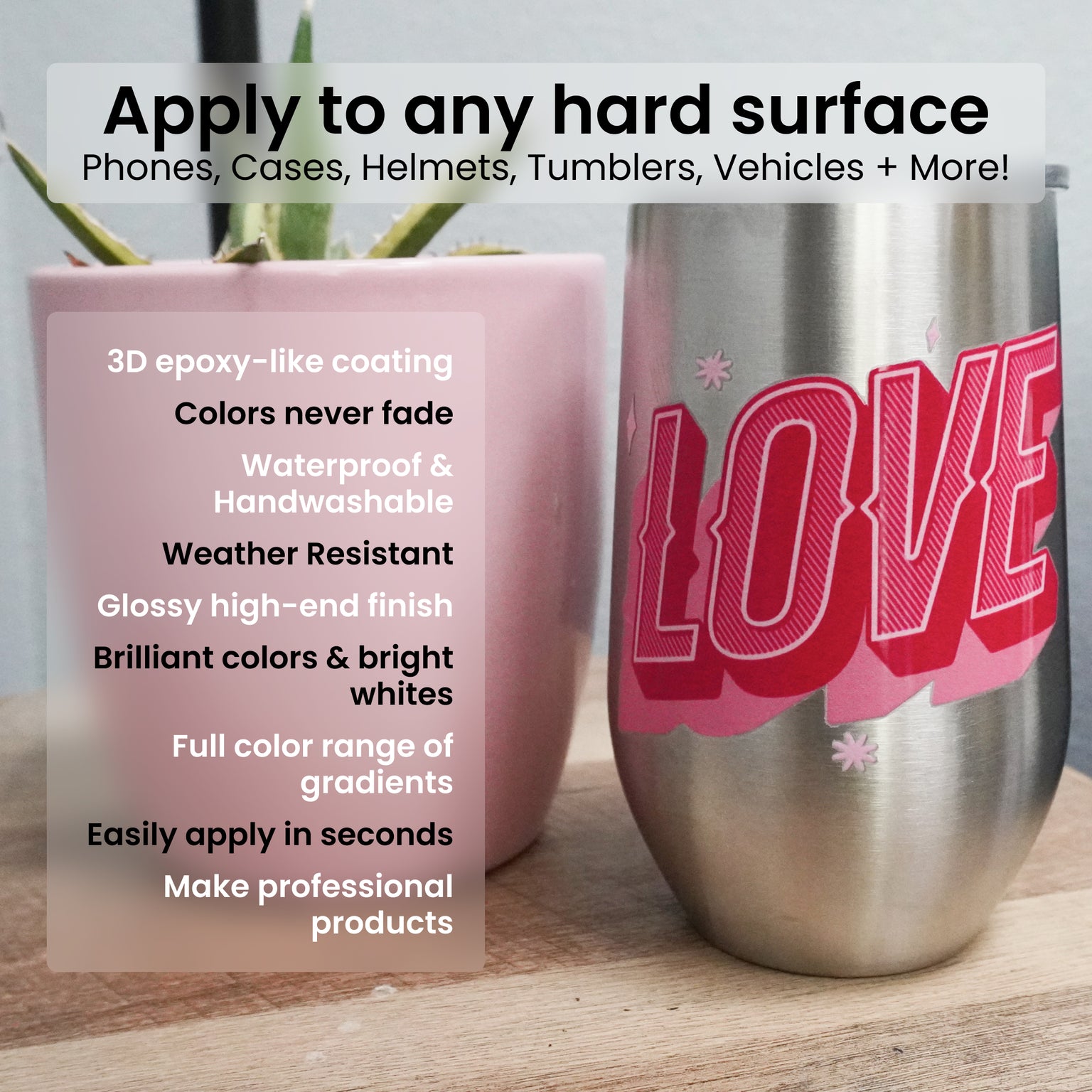 Our UV DTF 3D PermaStickers™ combine the latest UV DTF technology with exceptional adhesive properties, ensuring that your designs will stick around for the long haul. With unparalleled durability, remarkable adhesive properties, and endless design possibilities, our UV DTF 3D PermaStickers™ are perfect for artists, businesses, and individuals alike.